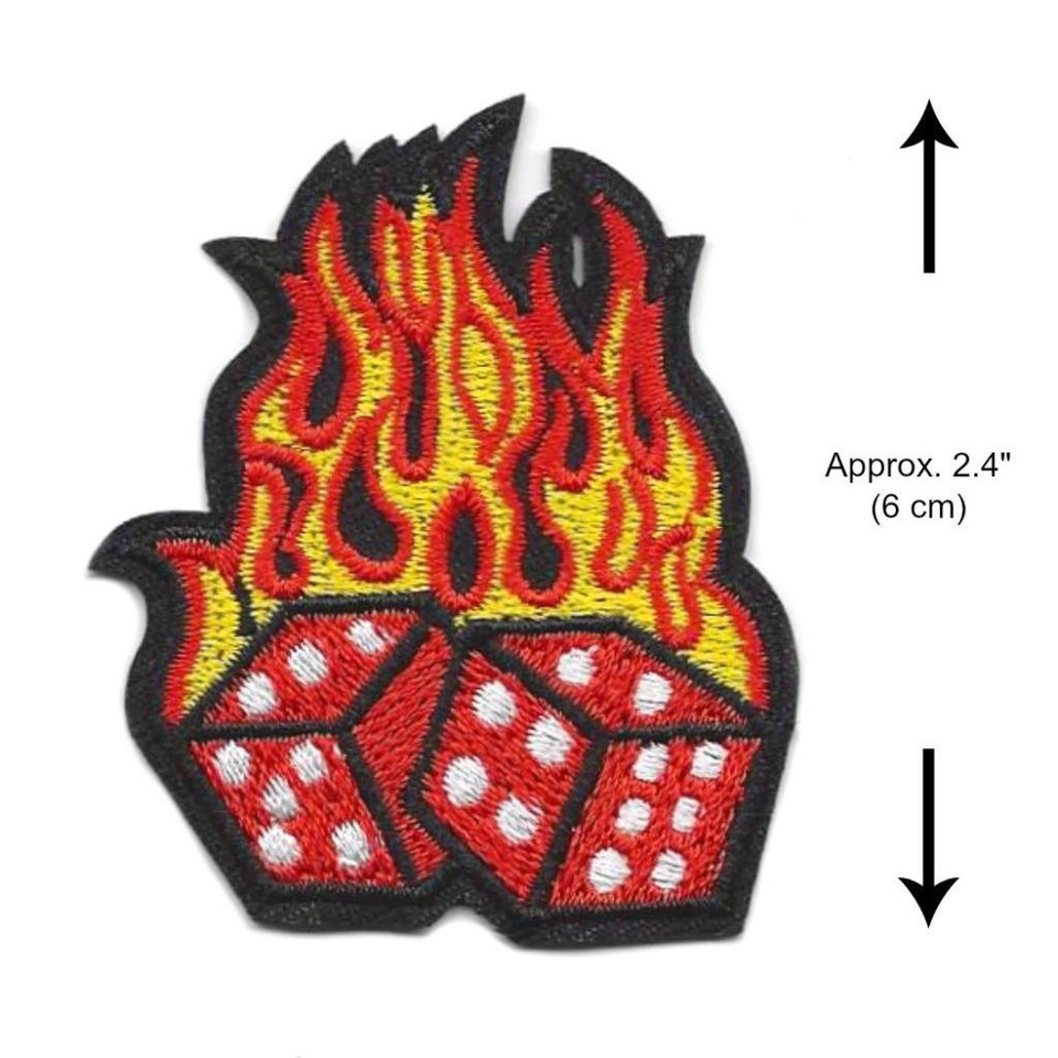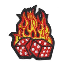 FLAMING DICE IRON ON PATCH 2.4" Flames Fire Rocker Gambler Embroidered Applique
