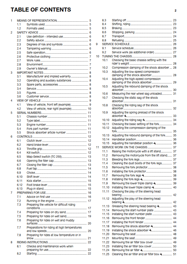 HUSQVARNA 2016 - TC 125 250 - OWNERS MANUAL - REPRINTED COMB BOUND