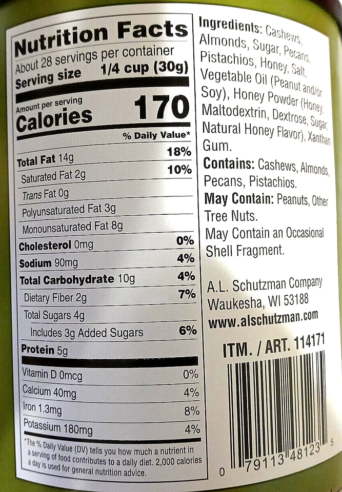 Savanna Orchards Honey Roasted Nut Mix Cashew/Almonds/Pecans 30 Oz EXP 05/2026
