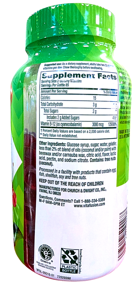 Vitafusion Extra Strength B12 Gummy Cherry Flavor Vitamins 170 Count EXP 11/2026