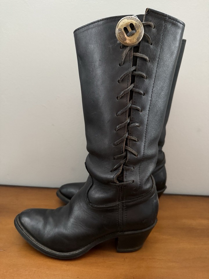 VTG 70s Harley Davidson Double H Women's Black Side Lace Up Boots USA Size 8 GUC
