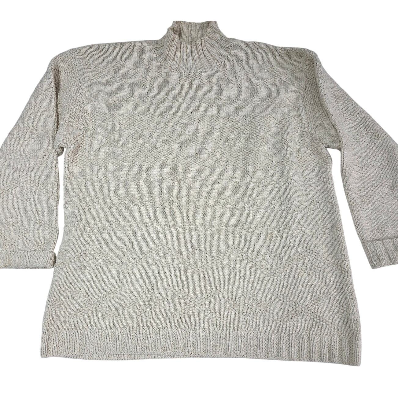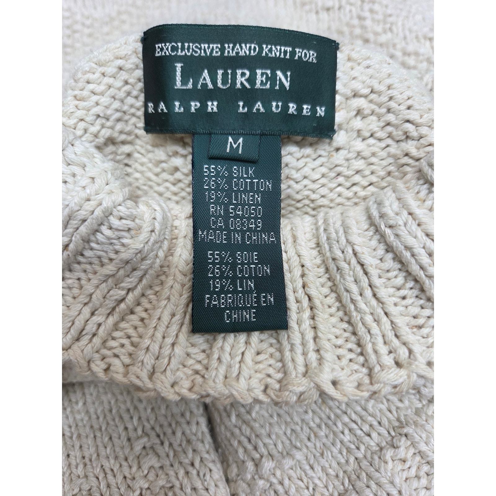 VTG 80s 90s Lauren Ralph Lauren Cream Hand Knit Sweater Silk Linen M