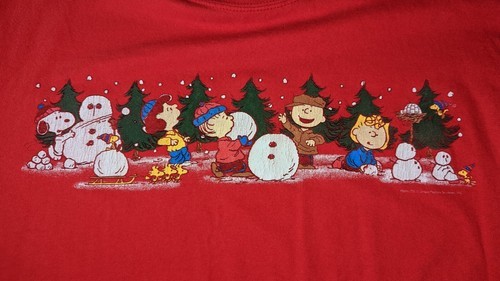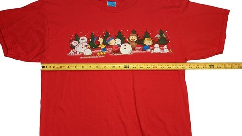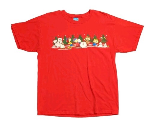Vintage Peanuts Charlie Brown T-Shirt Christmas Graphic Red Short Sleeve Large