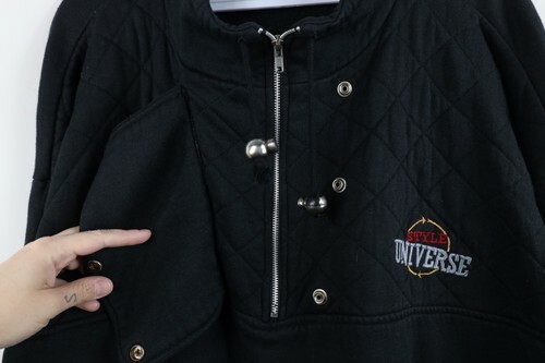 Vintage 90s Streetwear Womens 22W Distressed Quilted Bib Baggy Sweatshirt Black