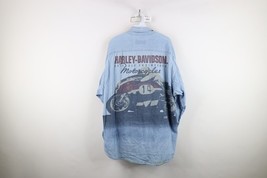 Vintage 90s Harley Davidson Mens XL Faded Big Logo Denim Jean Button Shirt Blue