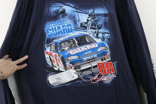 Vintage NASCAR Mens 2XL Distressed Dale Earnhardt Jr Racing Long Sleeve T-Shirt