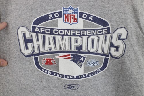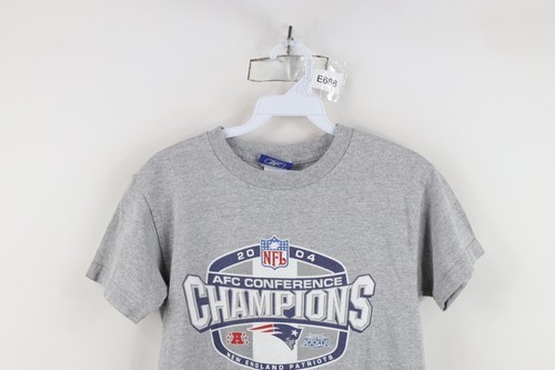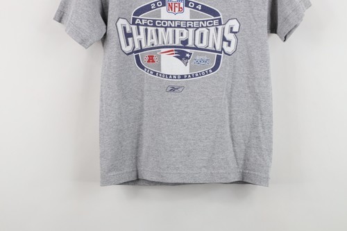 Vtg Y2K 2004 Reebok Boys S AFC Champs New England Patriots Football T-Shirt Gray