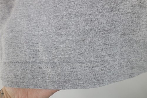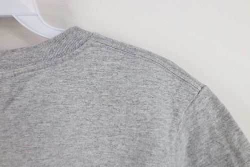 Dark spots front, back. Collar, arms discolored. Graphics cracking/faded. Color faded. Pilling. Loose thread tag
