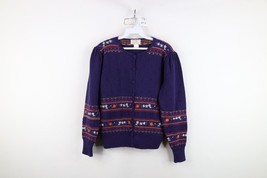 Vintage 90s Womens M Wool Fair Isle Crewel Embroidered Flower Cardigan Sweater