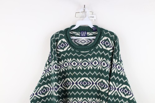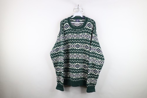 Vintage 90s Gap Mens Size XL Heavyweight Fair Isle Cotton Marled Knit Sweater