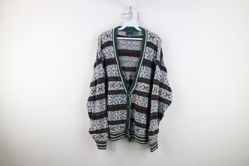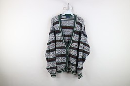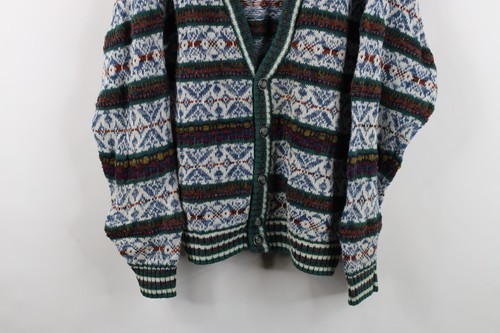 Vintage 90s Streetwear Mens Size Medium Rainbow Fair Isle Knit Cardigan Sweater