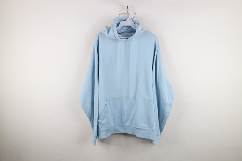 Vintage 90s Streetwear Mens Large Blank Boxy Fit Hoodie Sweatshirt Carolina Blue