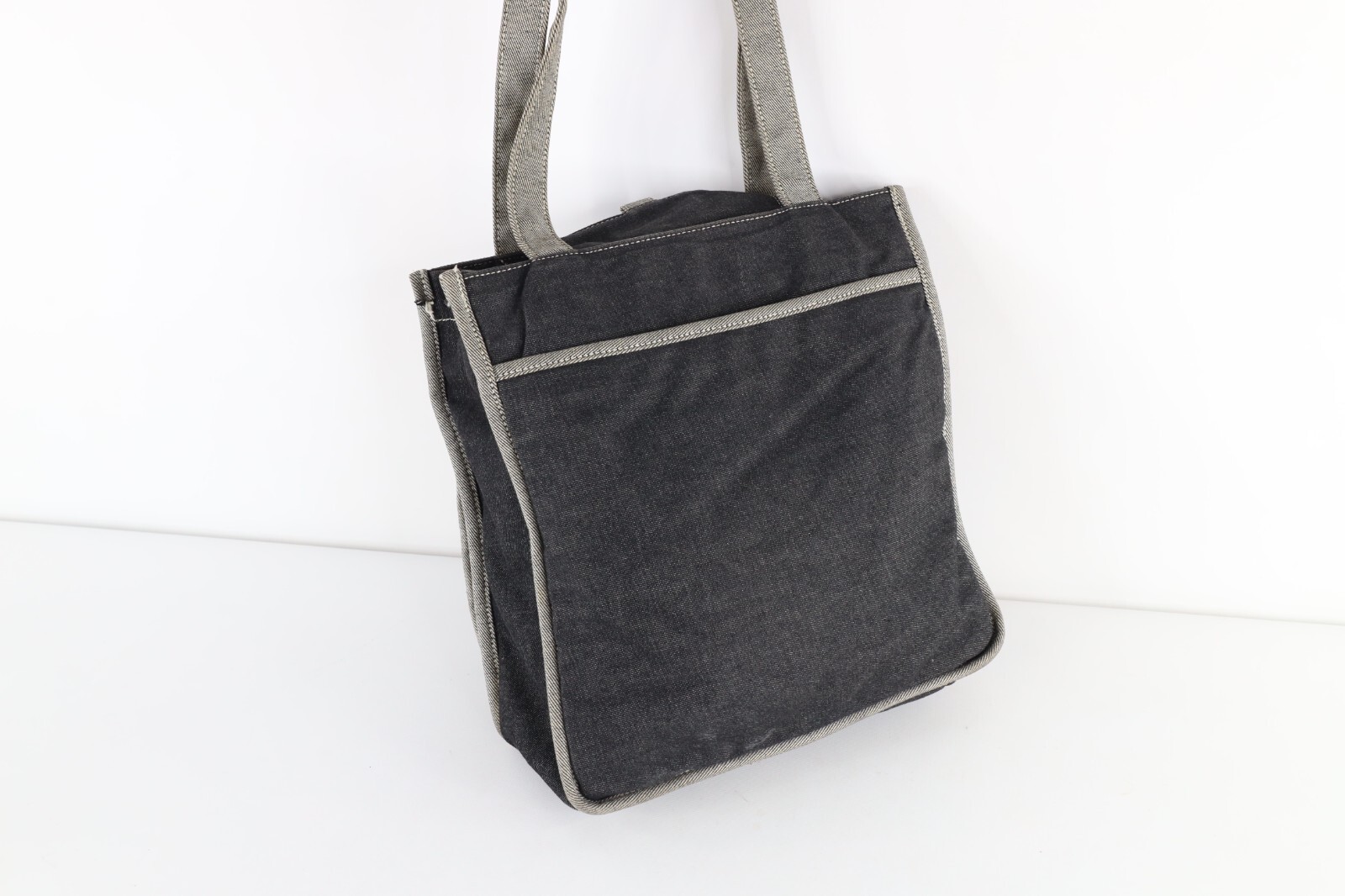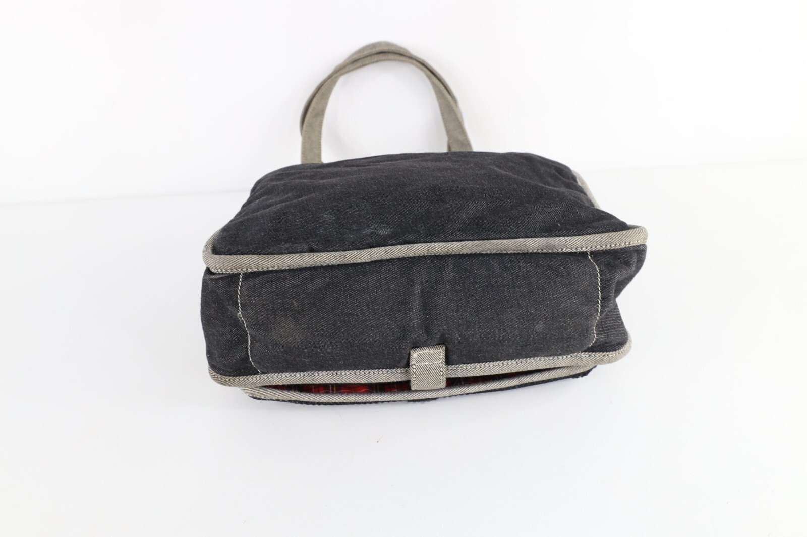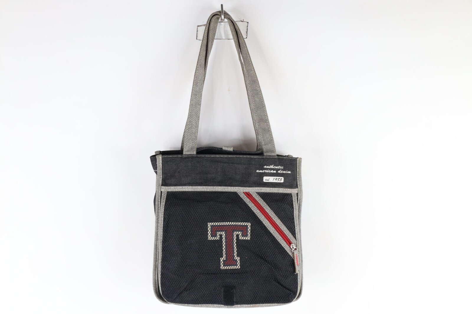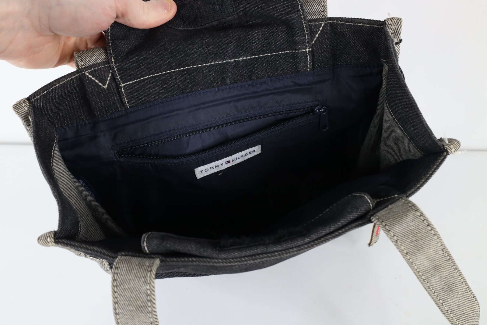 Vintage 90s Tommy Hilfiger Distressed Spell Out Tote Messenger Bag Denim Black