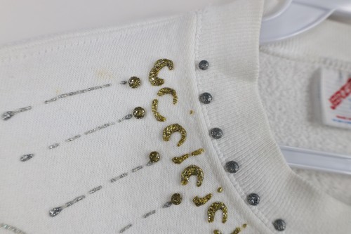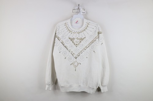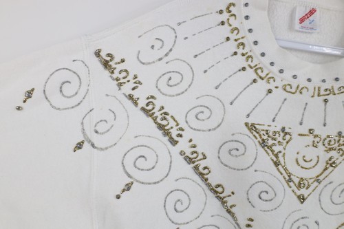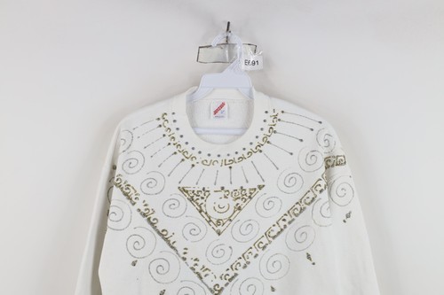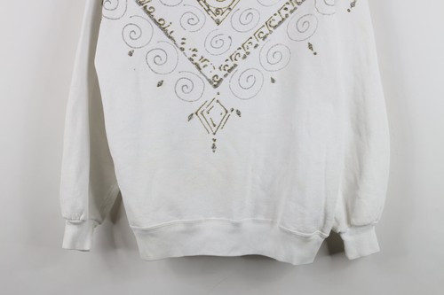 Vtg 90s Streetwear Womens L Distressed Glitter Glue Paint Geometric Sweatshirt