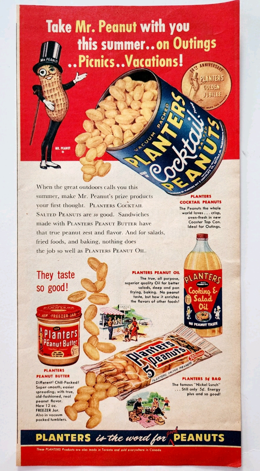 1956 Planters Salted Peanuts Advertisement Peanut Butter Oil Snacks DWQQ2