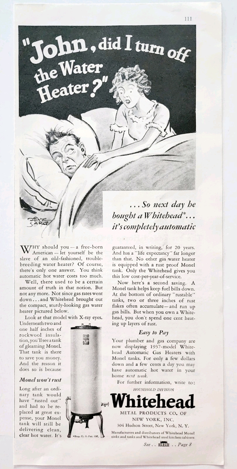 1937 Whitehead Metal Hot Water Heater Advertisement Vintage Appliances DWQQ5