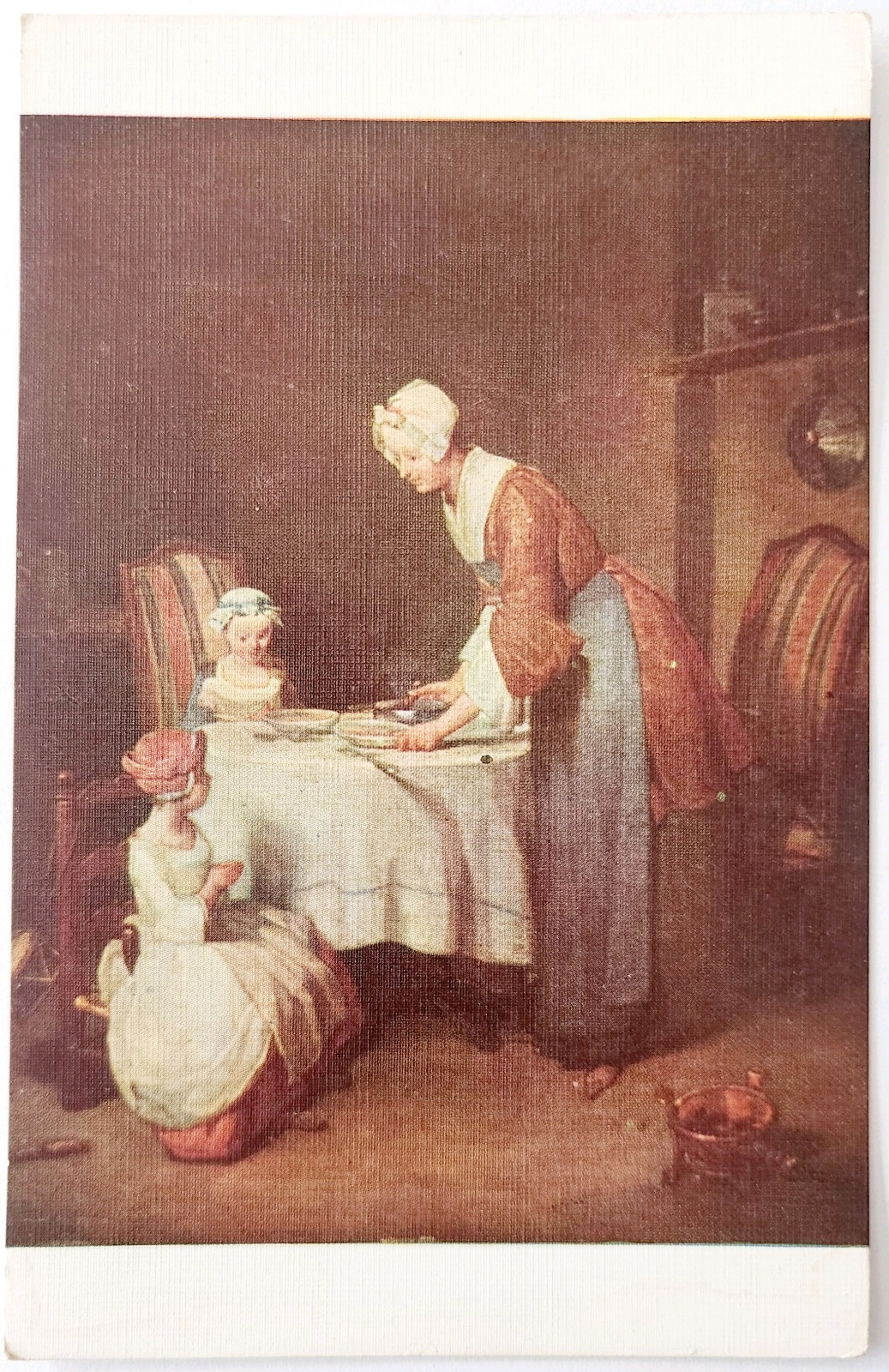 C1930-40s Linen Postcard The Blessing Chardin Louvre Unposted Paris E99A