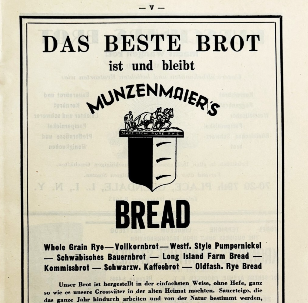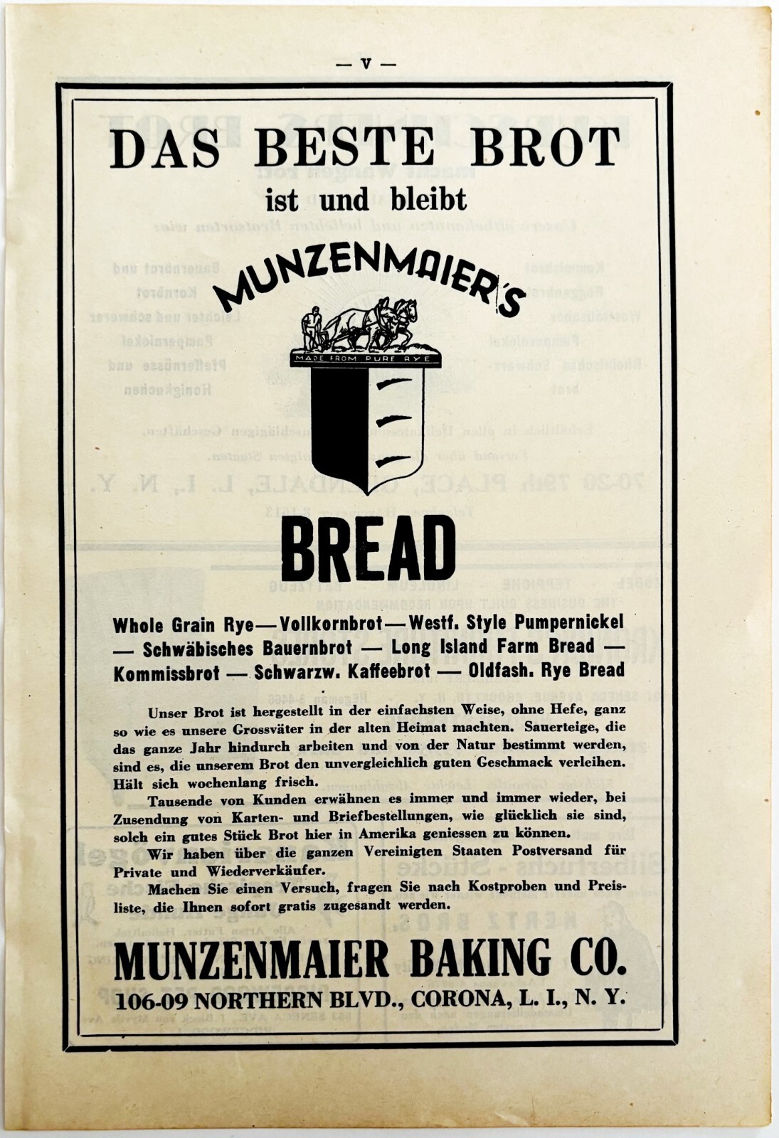 1945 WW2 German-USA Bakery Bread Advertisement Munzenmaier Baking Co NYC C94E