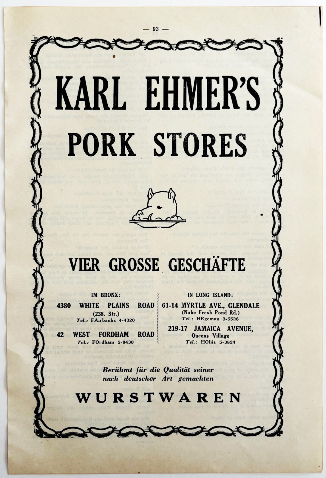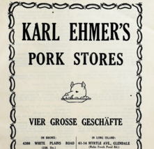 1945 WW2 German-USA Pork Shop Advertisement Karl Ehmer's Bronx L.I. NYC C94E
