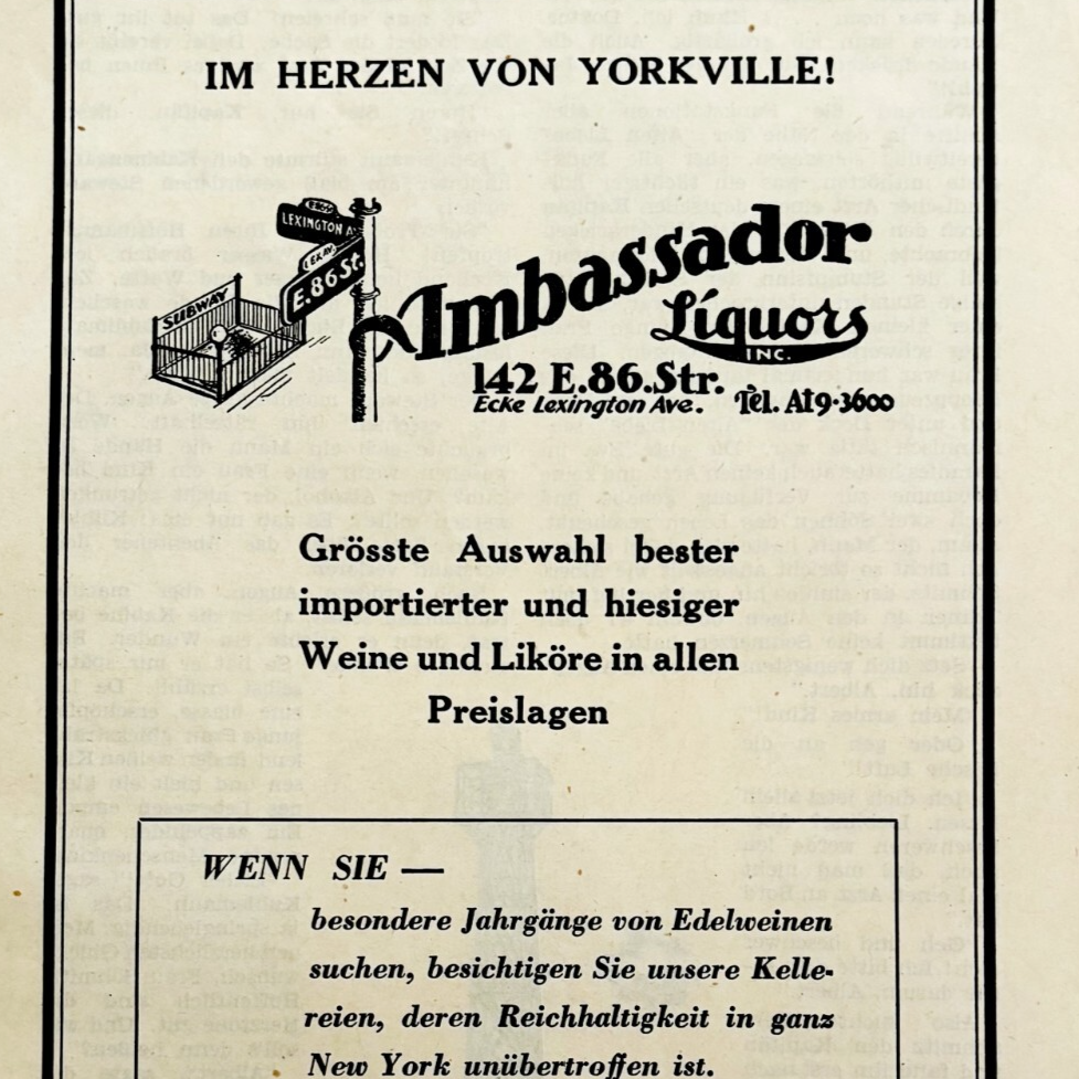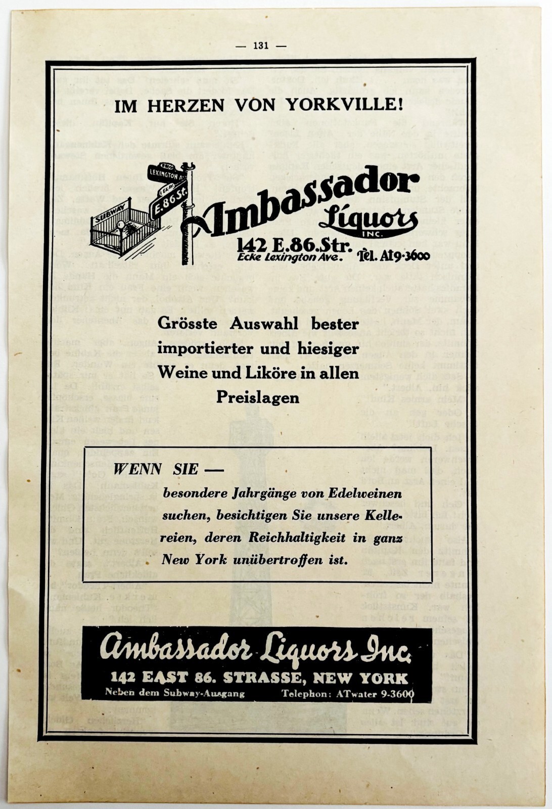 1945 WW2 German-USA Liquor Store Advertisement Ambassador Liquors NYC C94F