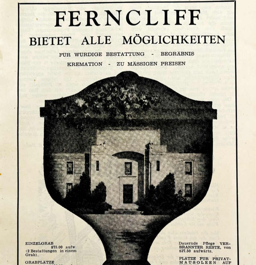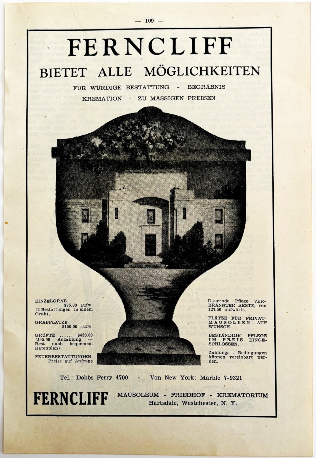 1945 WW2 German-USA Cemetery Advertisement Ferncliff Graves BurialNYC C94E