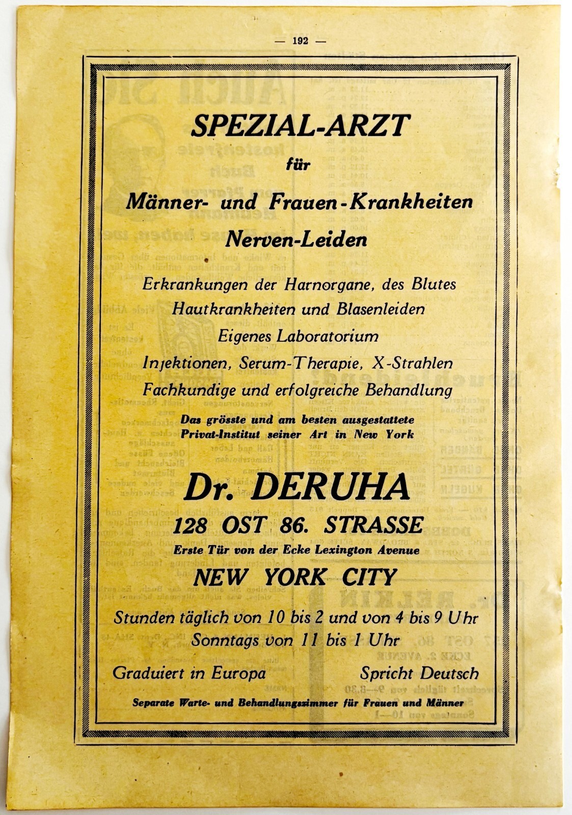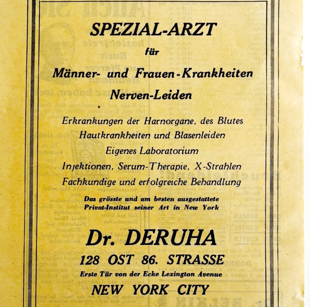 1945 WW2 German-USA Medical Doctor Advertisement Dr. Deruha Specialist NYC C94E