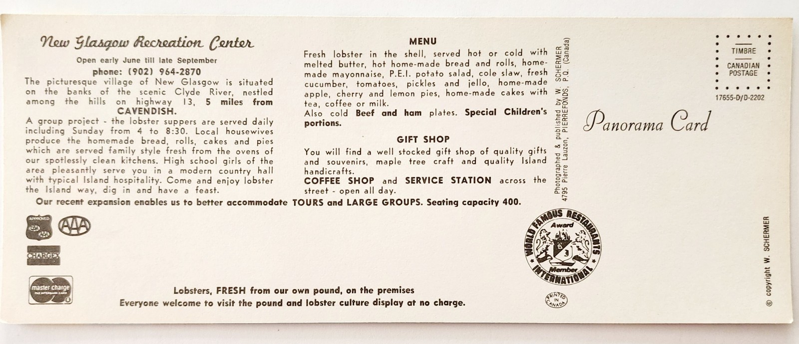 1960-70s Cavendish Postcard New Glasgow Lobster Supper Prince Edward Island E8S