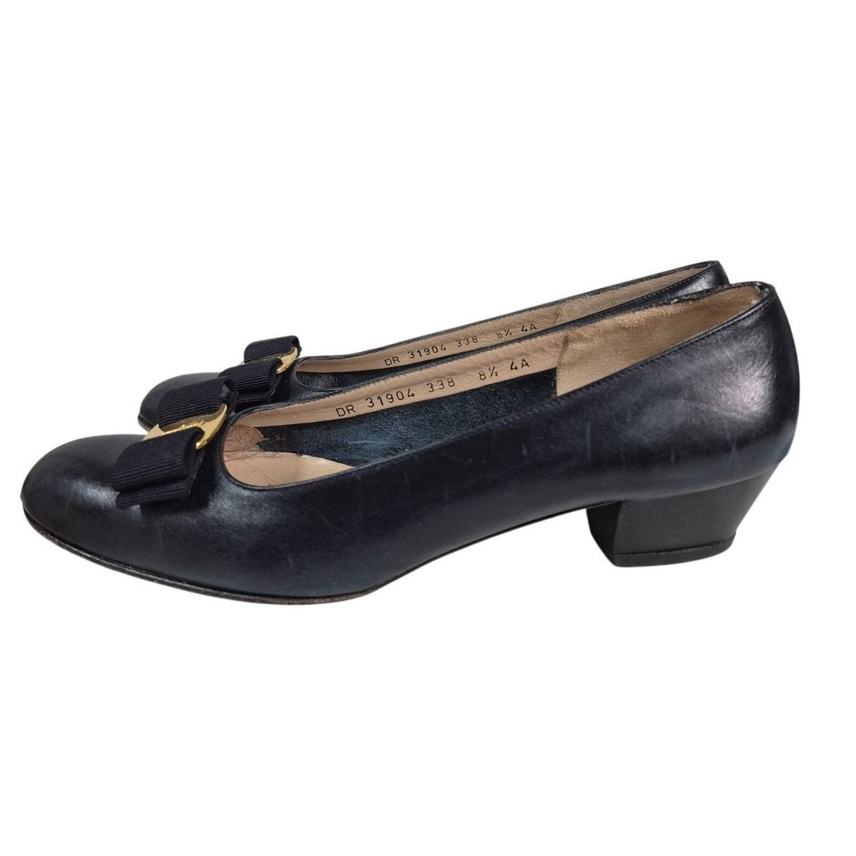 VTG Salvatore Ferragamo Low Heels Shoes Boutique Vara Blue Calf Sz 8.5 AAAA