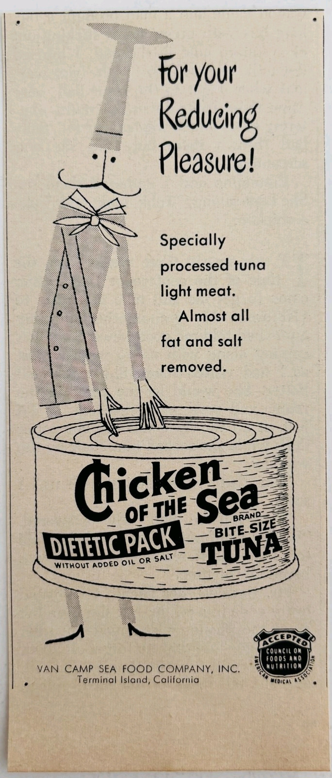 1954 Chicken Of The Sea Tuna Fish Advertisement Van Camp Sea Food DWQQ9