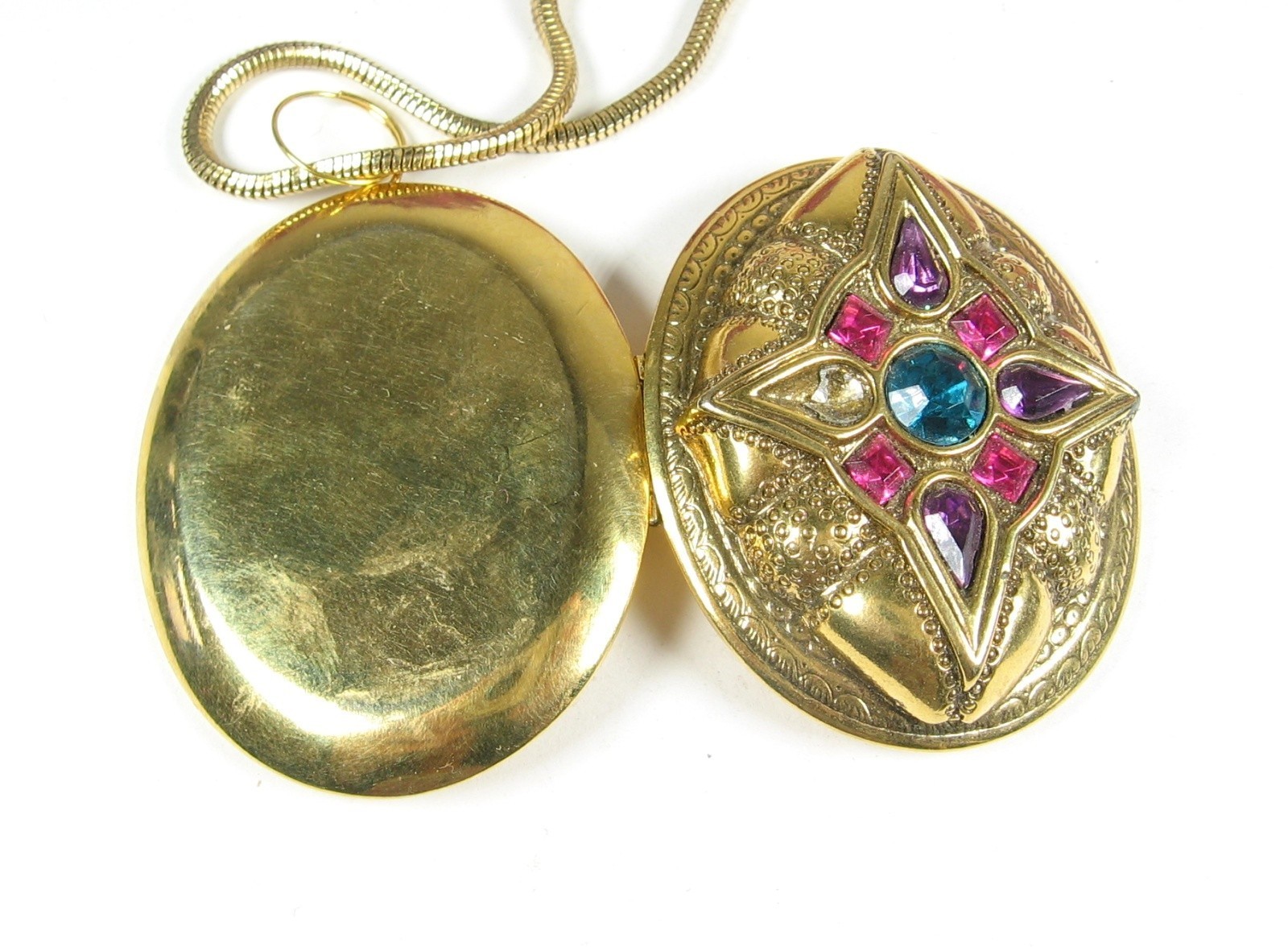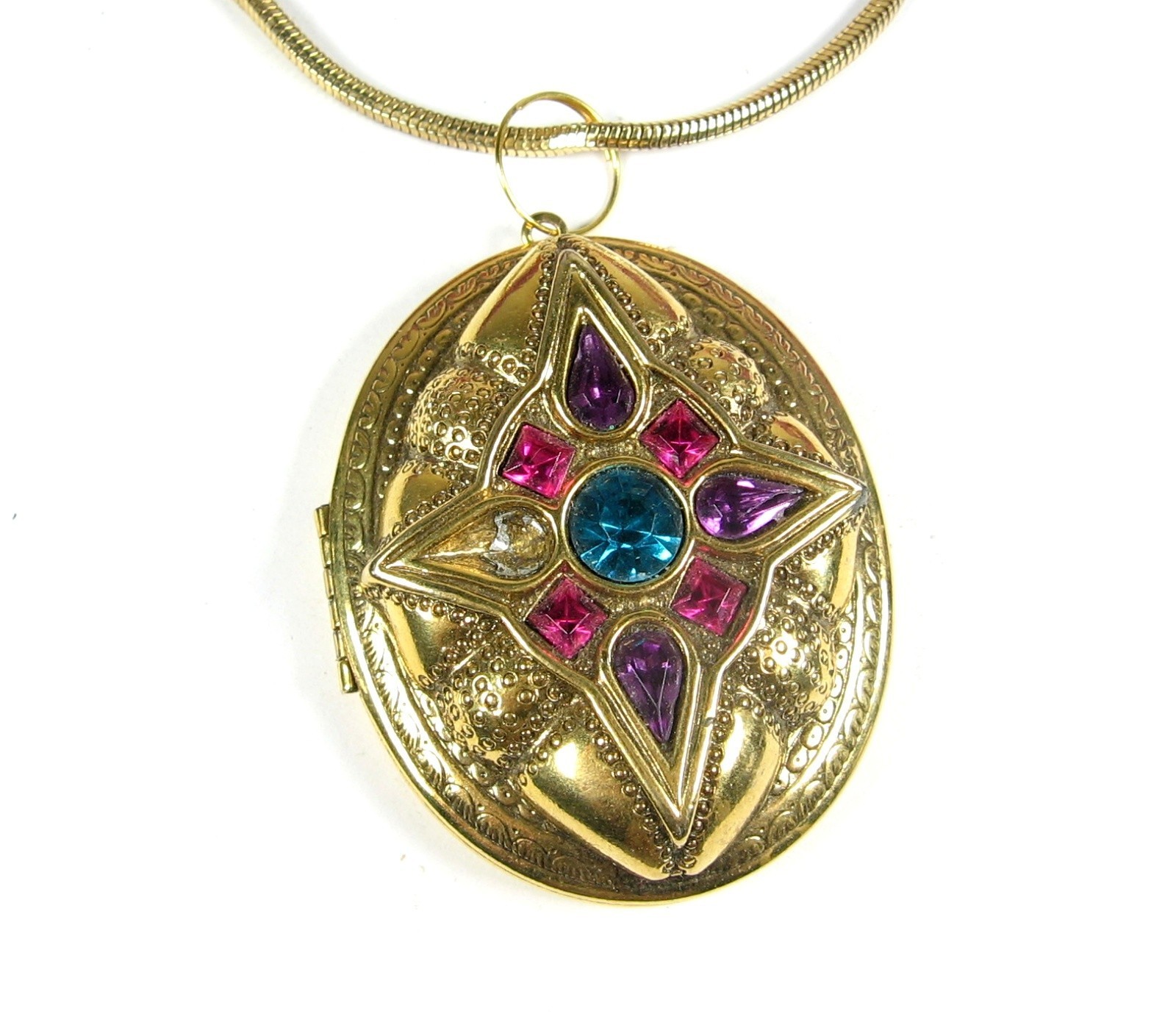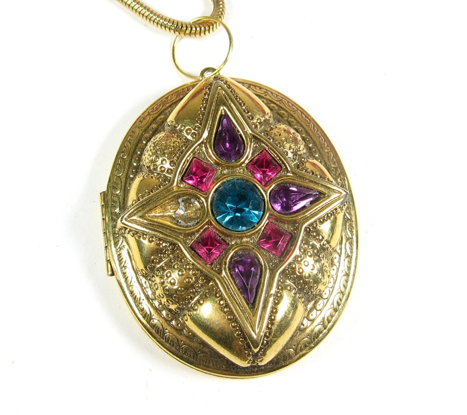 Big 2" Rhinestone Locket Vintage Necklace and 50 similar items