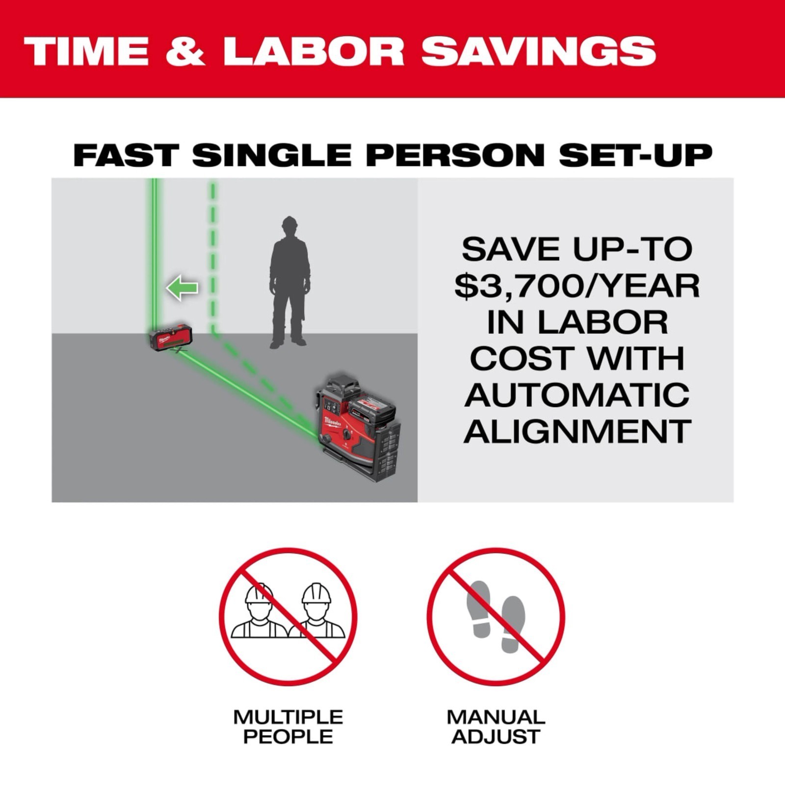 Milwaukee 3642-21 M12 Green 360 3-Plane Laser W/Automatic Alignment & Receiver