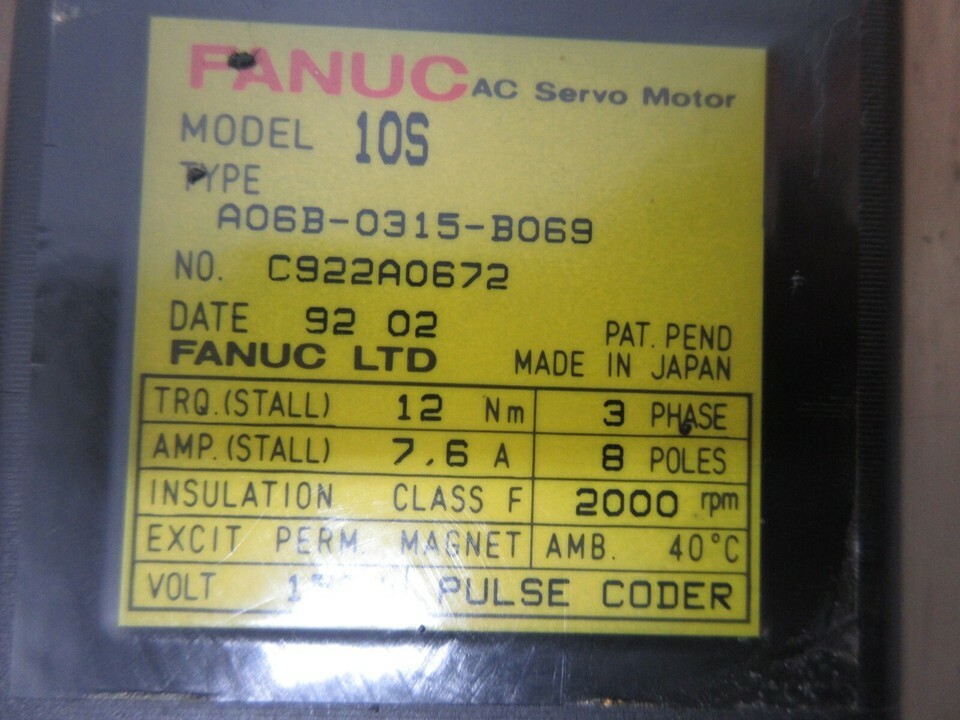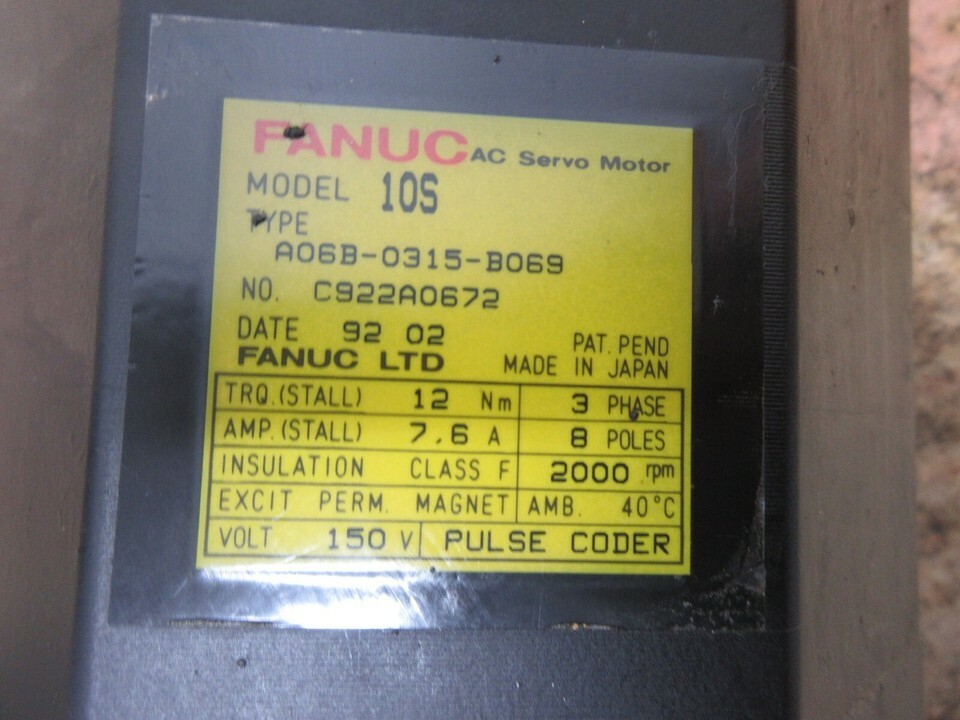 SPECIAL PRICE FANUC AC SERVO MOTOR MODEL 10S A06B-0315-B069 C922A0672 92 02