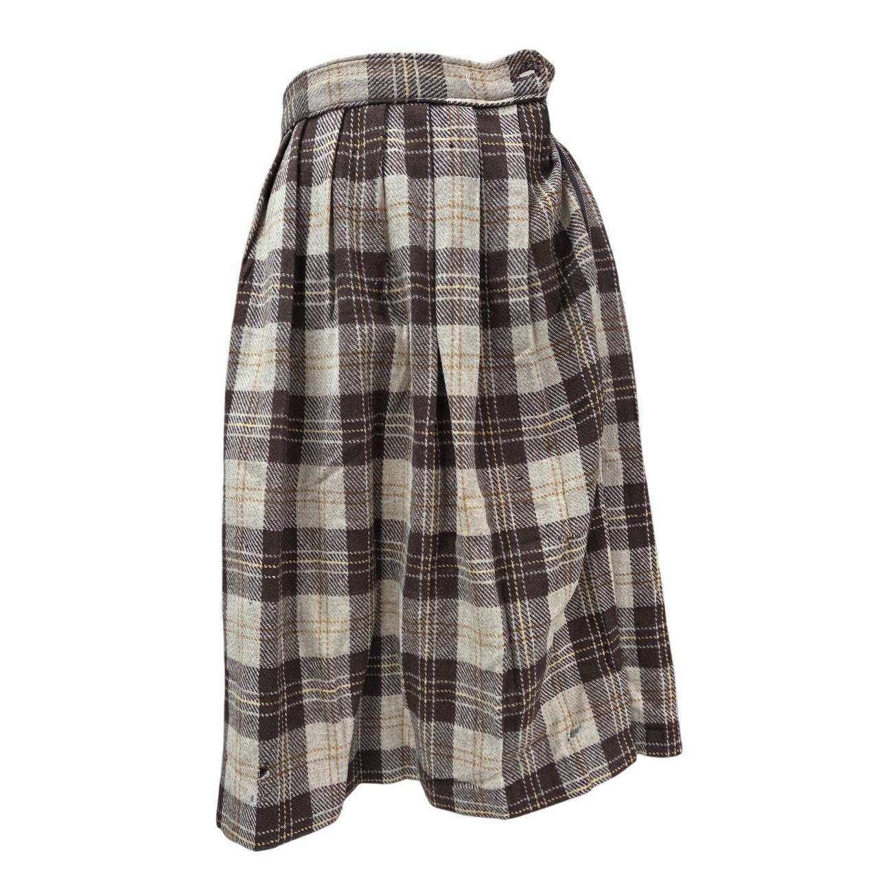 Unlabeled 1940s?1950s wool skirt. Wool plaids like this were staples of mid-century American and British wardrobes, often worn with blouses or knits for daywear.
