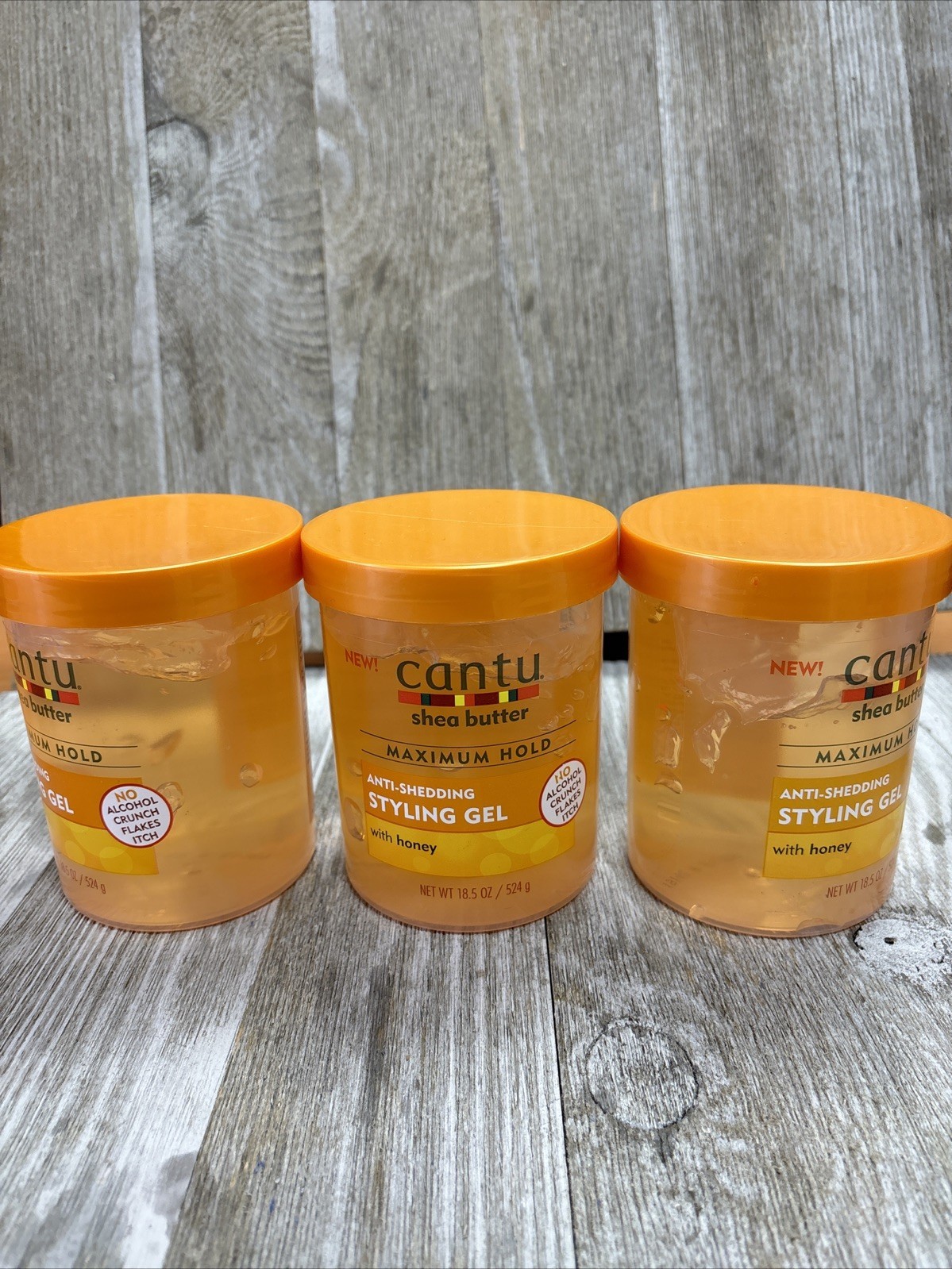 LOT OF 3 Cantu Shea Butter Maximum Hold Anti-Shedding Styling Gel+ Honey 18.5 oz