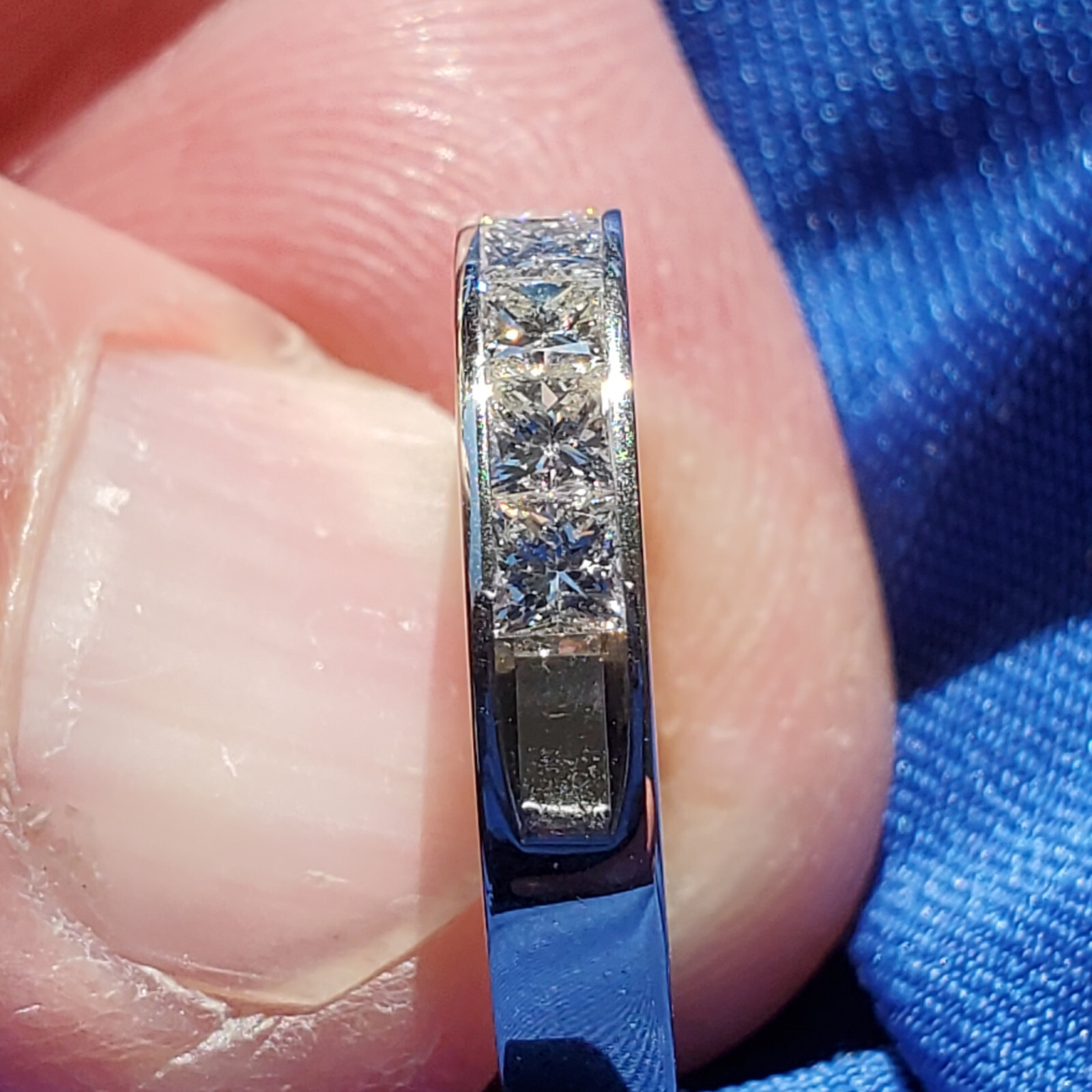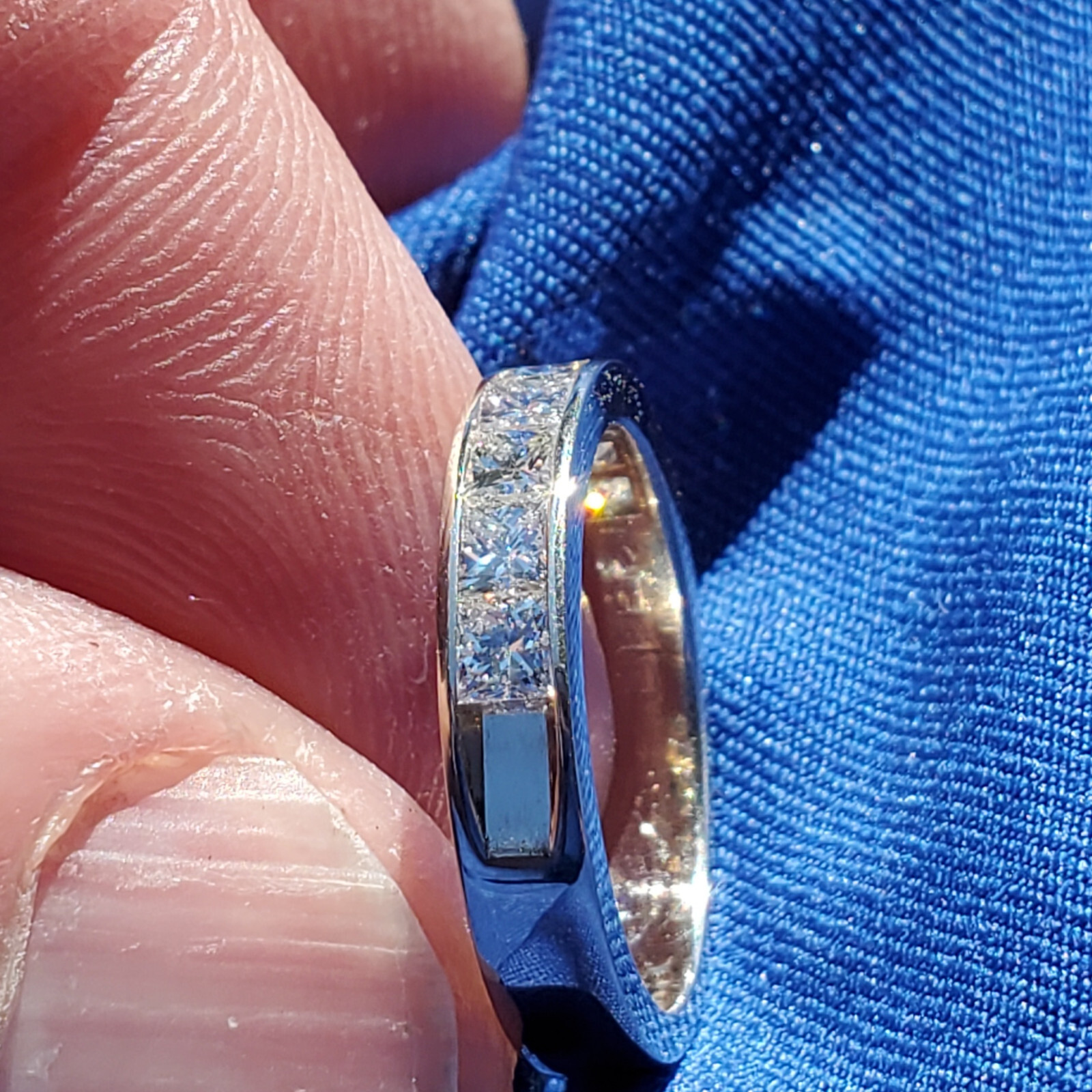 Earth mined Diamond Deco Wedding Band 14k Princess cut D VVS Anniversary Ring