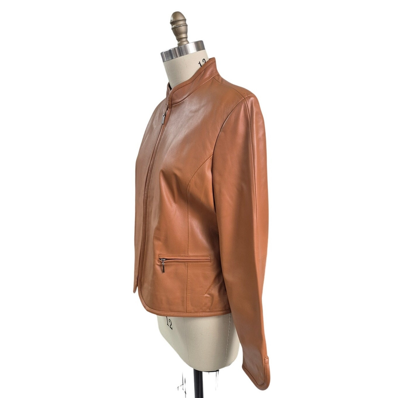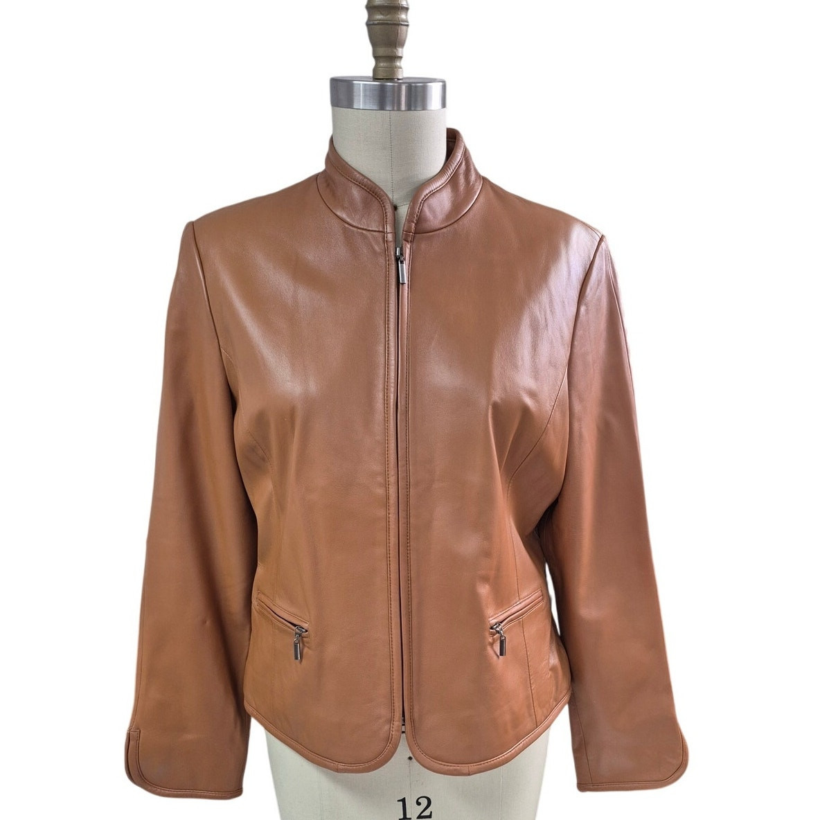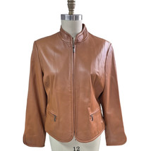 Vtg Valerie Stevens Tobacco Brown Soft Leather Jacket Zip Front Womens Sz XL