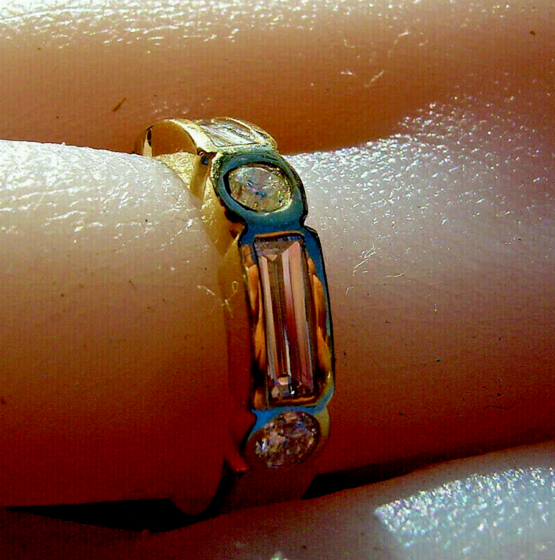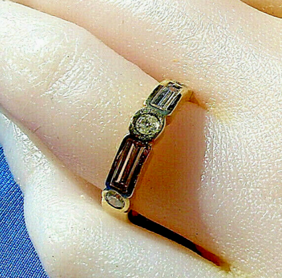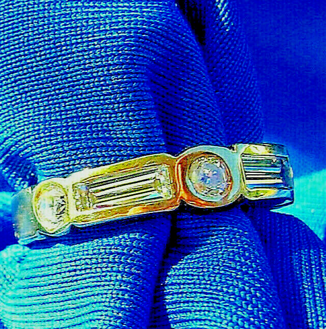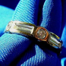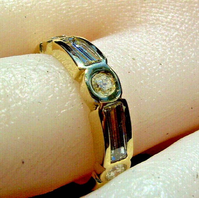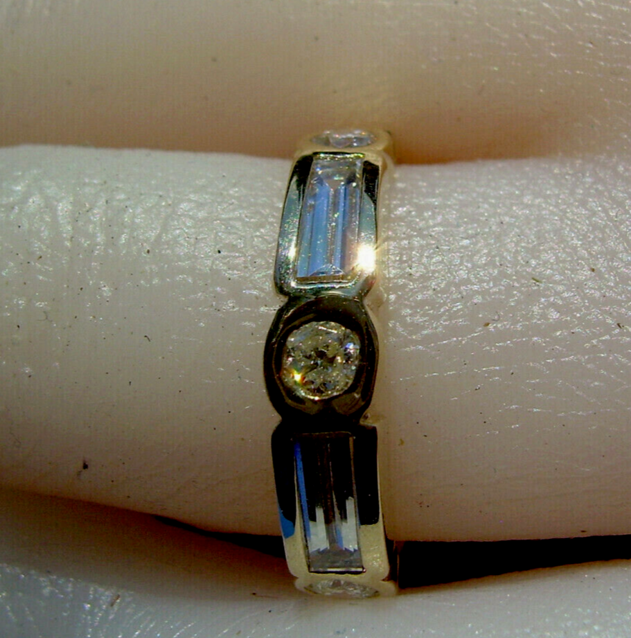 NATURAL DIAMOND ROUND AND BAGUETTE WEDDING BAND STATEMENT RING.