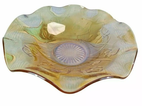 Vintage Jeanette Glass ~ Iris & Herringbone ~ Iridescent ~ Carnival Serving Bowl