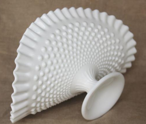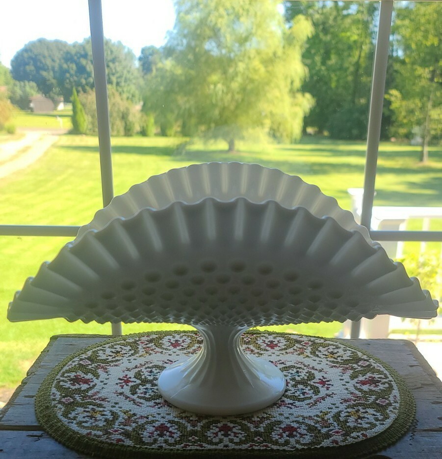 Vintage ~ Fenton ~ Footed Fruit Bowl ~ White Milk Glass ~ Hobnail ~ 12.75" Long