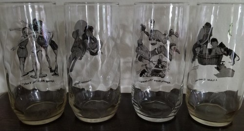 SET OF EIGHT (8) CLEAR GLASS WITH NORMAN ROCKWELL GRAPHICS ON SIDE