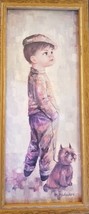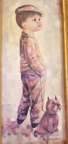 Vintage Mid Century ~ 7.5" x 16" ~ M. Medeiros Print ~ Boy w/Dog Picture