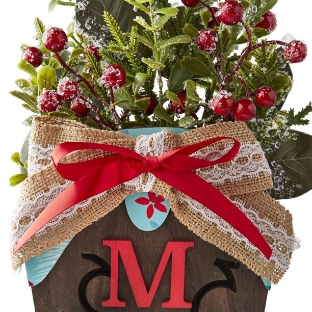 Frosted greenery and red berries come with boot ~ can be replaced with other floral arrangements of your choice