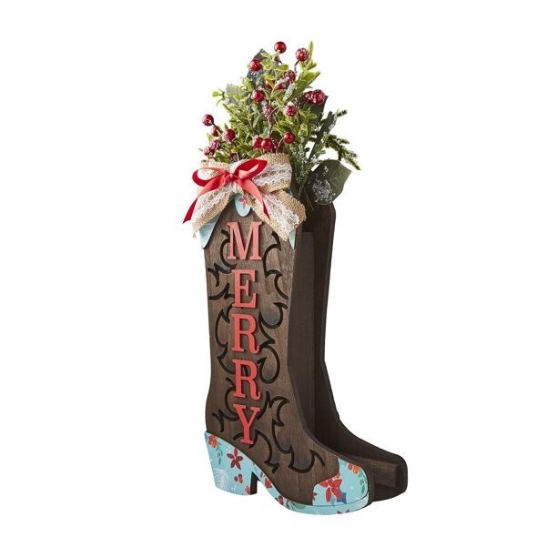 Pioneer Woman ~ Wood ~ 17" MERRY Cowboy Boot and 48 similar items