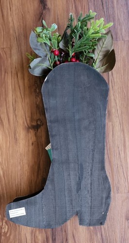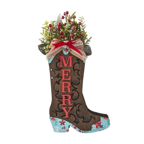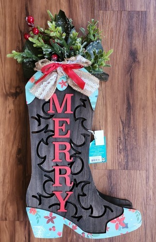 Pioneer Woman ~ Wood ~ 17" MERRY Cowboy Boot w/Foliage ~ Christmas ~ Holiday