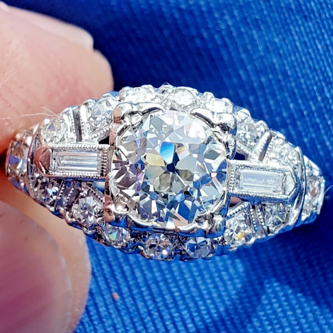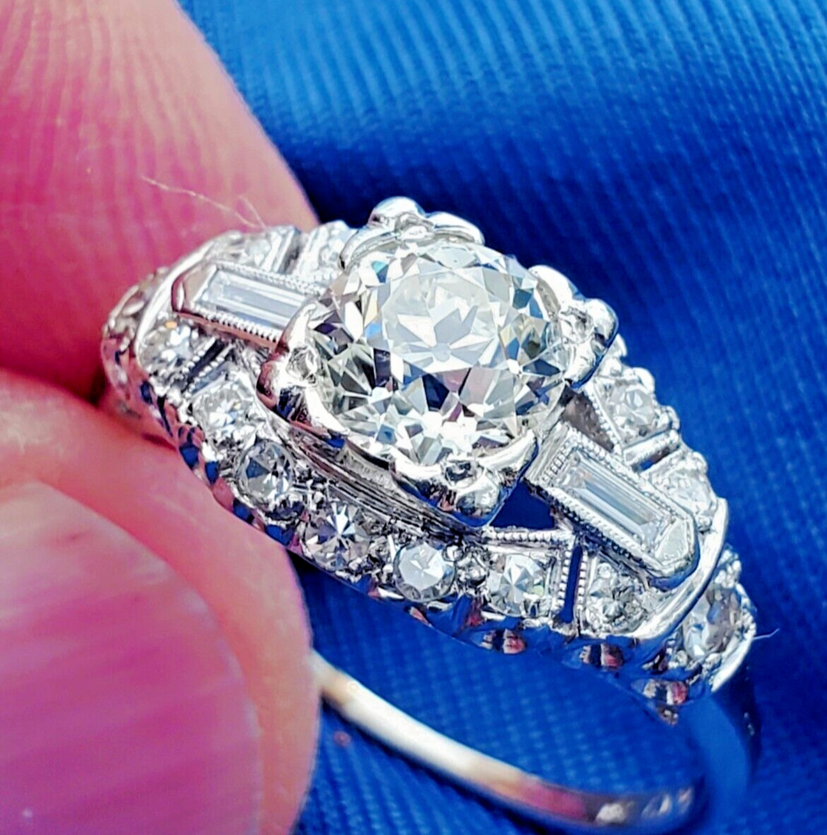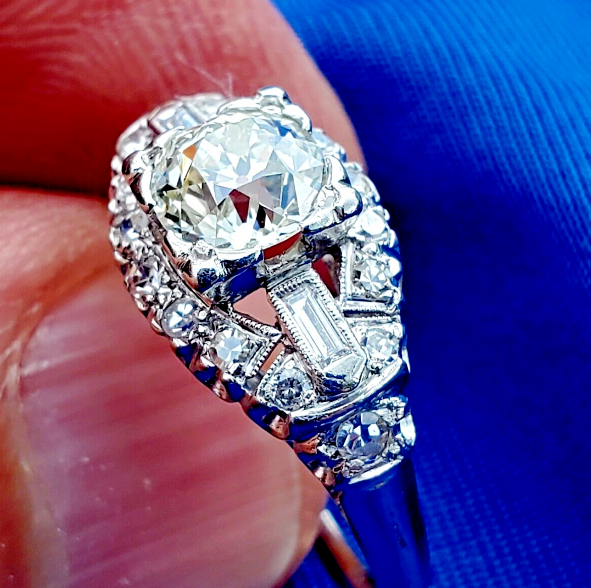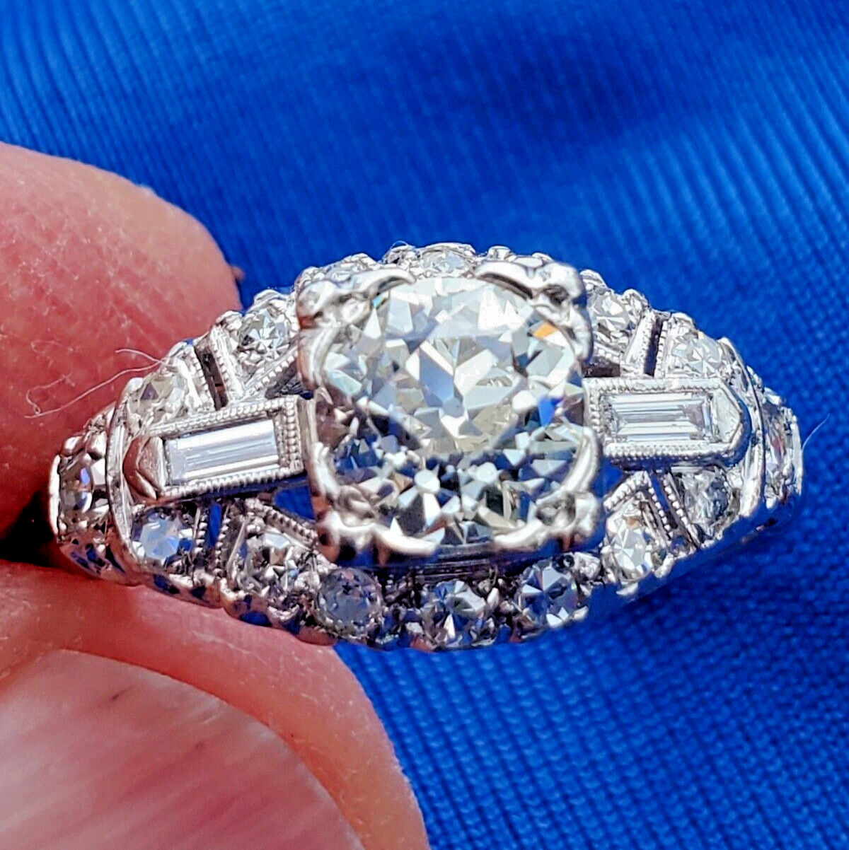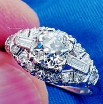 Earth mined Diamond Deco Engagement Ring Antique Platinum Statement Solitaire