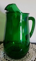 1970's Dark Green Glass ~ 1 Quart ~ Unique Beverage Pitcher ~ Stands 8.25" Tall