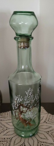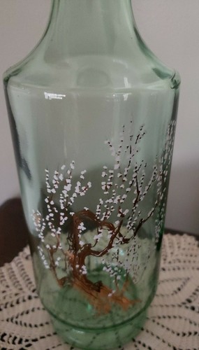 Vintage ~ 12" Tall ~ Green Bottle w/Cork Stopper ~ Gold Tree w/White on Front