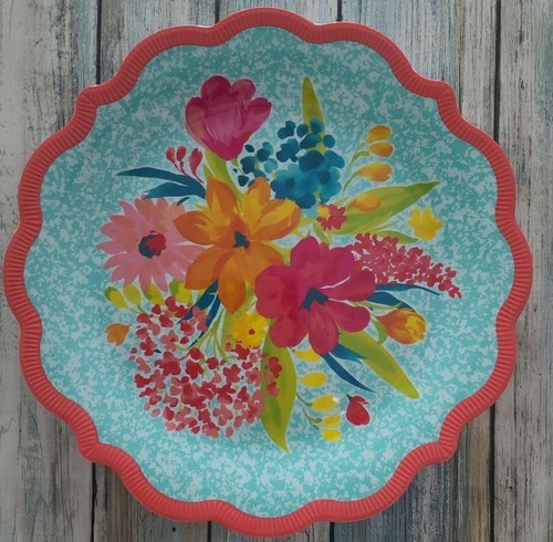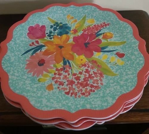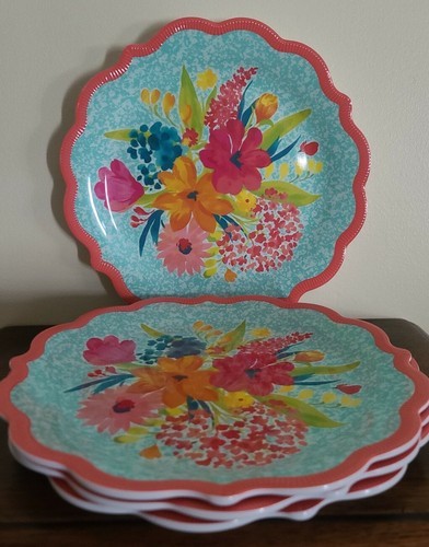 Four (4) Pioneer Woman ~ Melamine ~ Sunny Days ~ Coral ~ 10.7" Dinner Plates