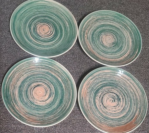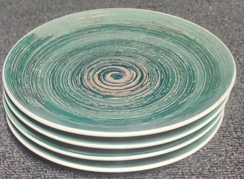 Set of Four (4) ~ Mainstays ~ 8" Dia ~ Green Swirl Salad Plates ~ Stoneware ~ 2