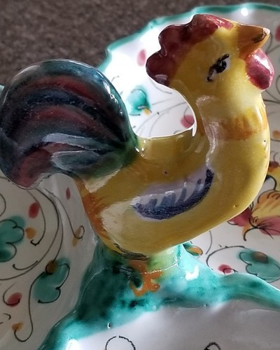 Vintage Italy 1298 ~ Ceramic Painted Rooster ~Three (3) Compartment Serving Dish